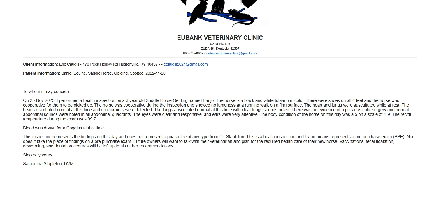 I would like everyone to meet Banjo, a coming 4 year old American Gaited Horse gelding. He stands 14.3hh with a stout build and is on four keg shoes. He is up to date on all vaccines and just had his teeth floated last week.