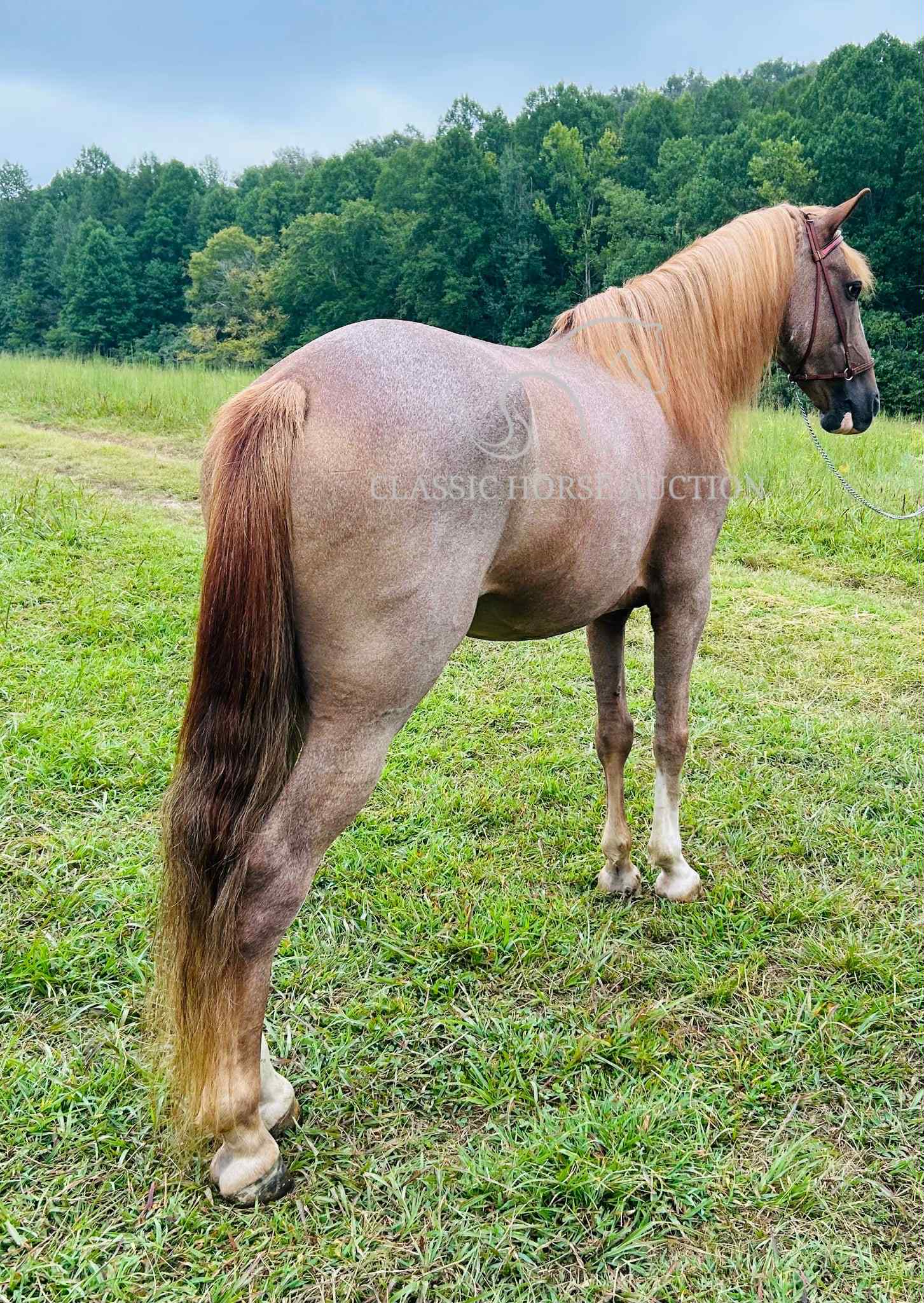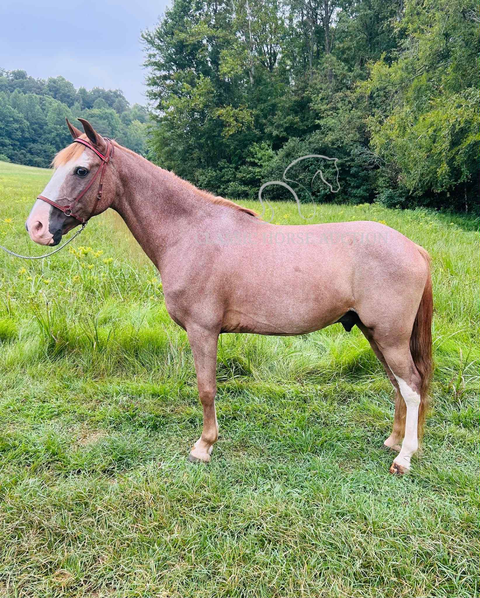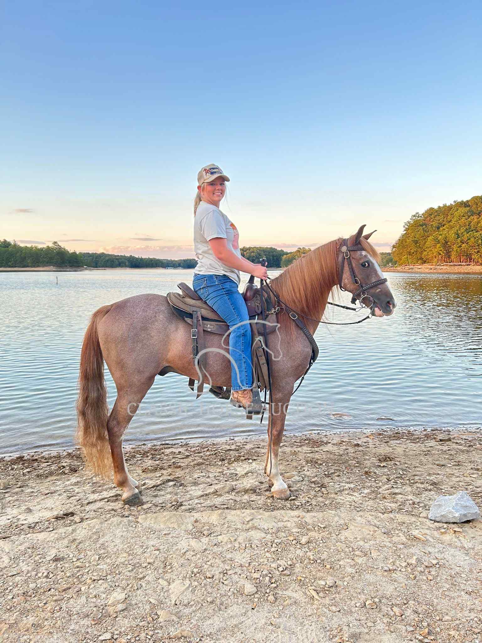 We proudly introduce to you, Billy, a 12 yr old grade TWH gelding. Billy is a beautiful sorrel sabino or as many old timers would say, a strawberry roan. He has an eye catching blaze, along with enough white markings to add some chrome. Billy also has a healthy, thick, blonde mane and tail! He isn’t just a pretty face though, Billy is an experienced trail mount! Billy has seen countless miles of trail riding, along with numerous camping trips. He has been both stalled and picket lined while camping. Billy easily loads and backs off the trailer with no fuss. He has encountered wildlife such as, deer, squirrels, rabbits, etc. while trail riding. He confidently crosses water, downed trees, and travels strategically through rocky and rugged terrain. He has spent many hours in the backwoods where the terrain requires skill.
