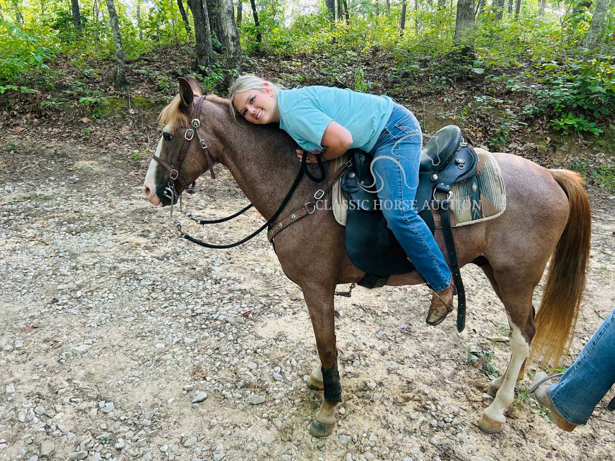 Billy is UTD on deworming, coggins, vaccinations, and has a clear health exam from the veterinarian. He is ready to hit the trails this fall! Billy is just simply a solid trail horse that has been there and done it. No fancy buttons, but enjoyable to hit the trails on, along with being a loving companion at home.