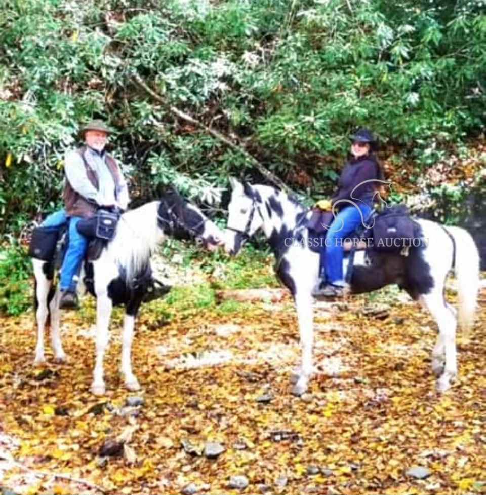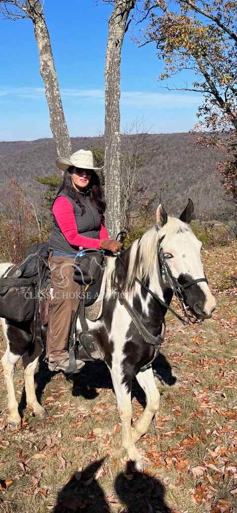 Joe is a seasoned and dependable 8-year-old registered Spotted Saddle Horse with an unshakable mind and a kind heart. He’s been extensively ridden through Big South Fork (TN), both sides of the Smoky Mountains (NC & TN), Daniel Boone Forest (KY), and Shawnee (IL). He’s also been in parades and served as an outrider alongside wagons.