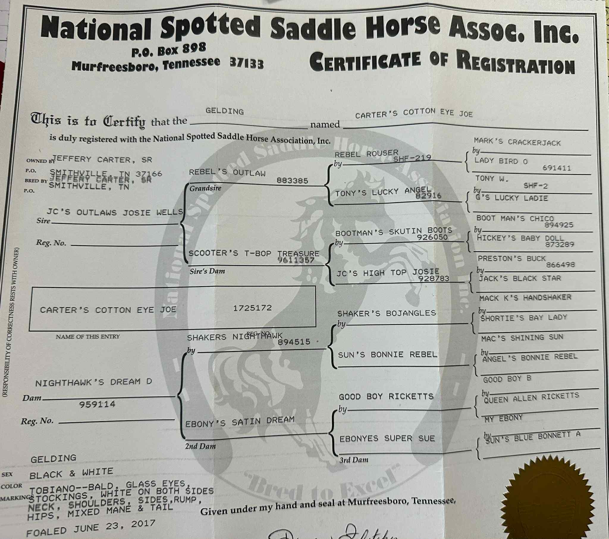 - Foal Date: June 23, 2017