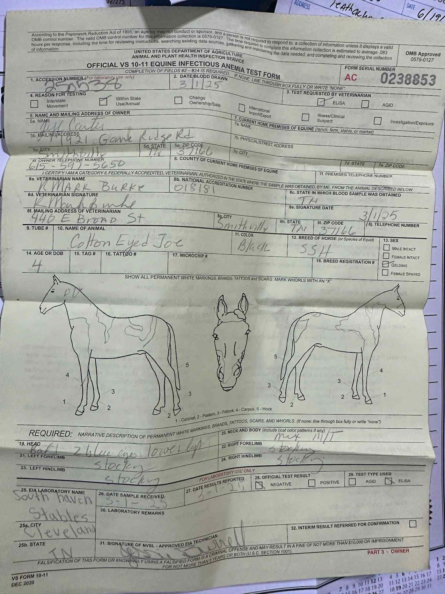 Vaccinations (Rabies, Coggins, 5-in-1): 3/1/2025