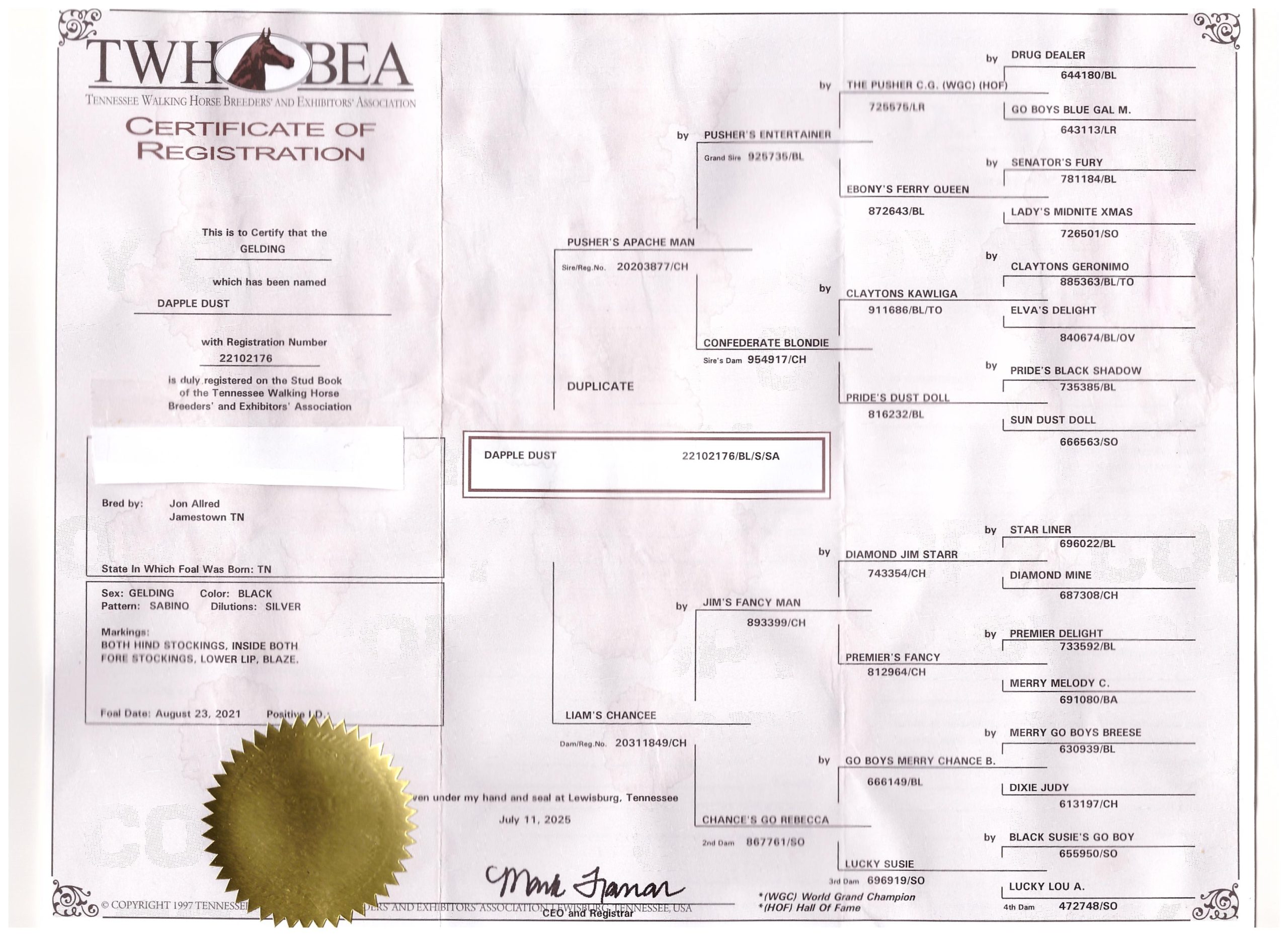 - Foal Date: August 23, 2021