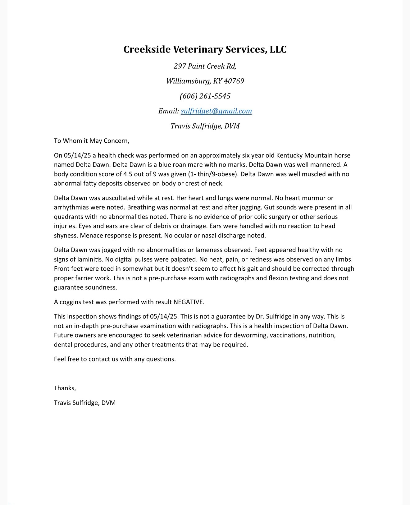- Breed: Kentucky Mountain