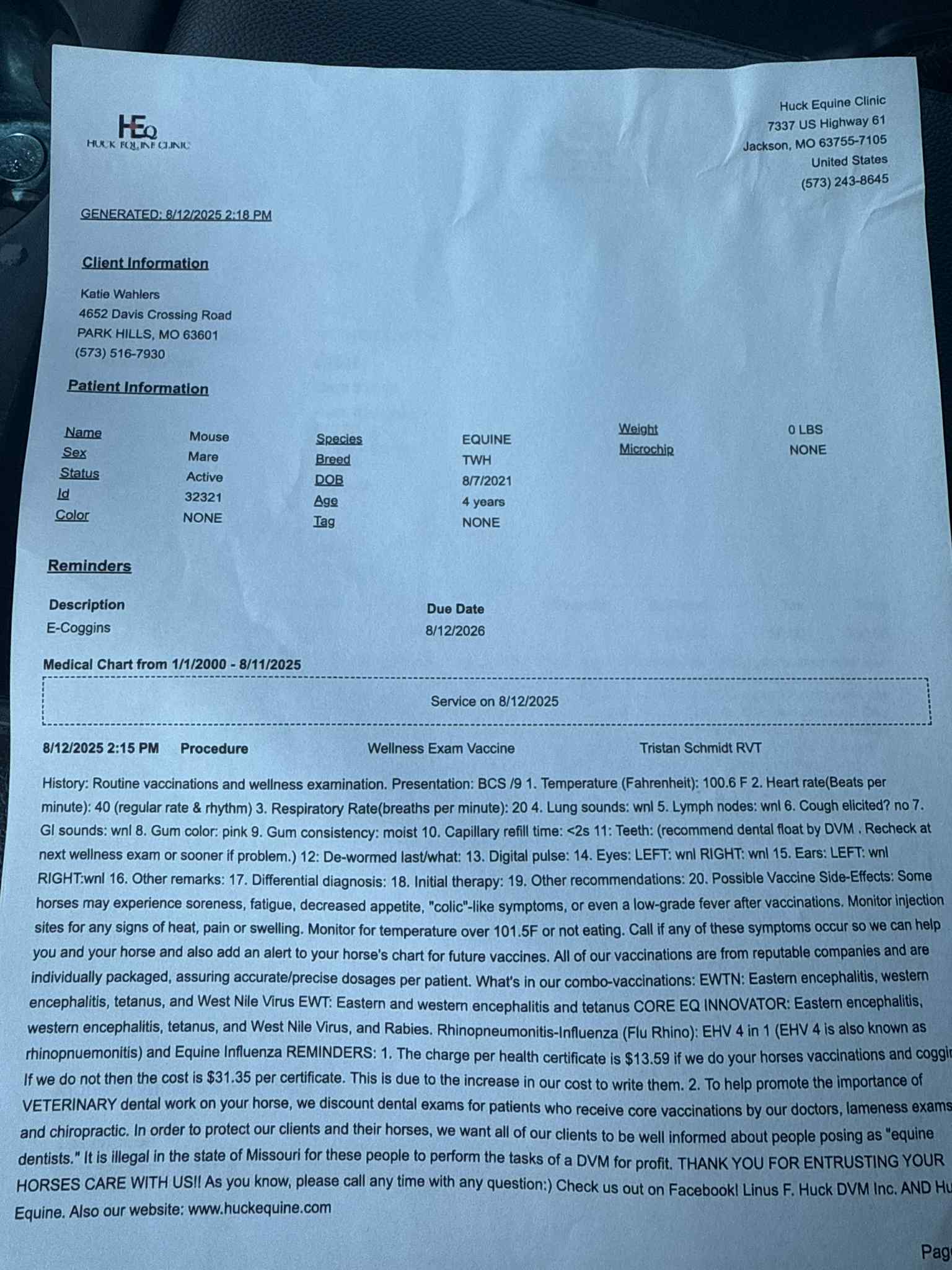 If you have any questions about Mouse, please call or text Katie Wahlers at 573 516 7930.