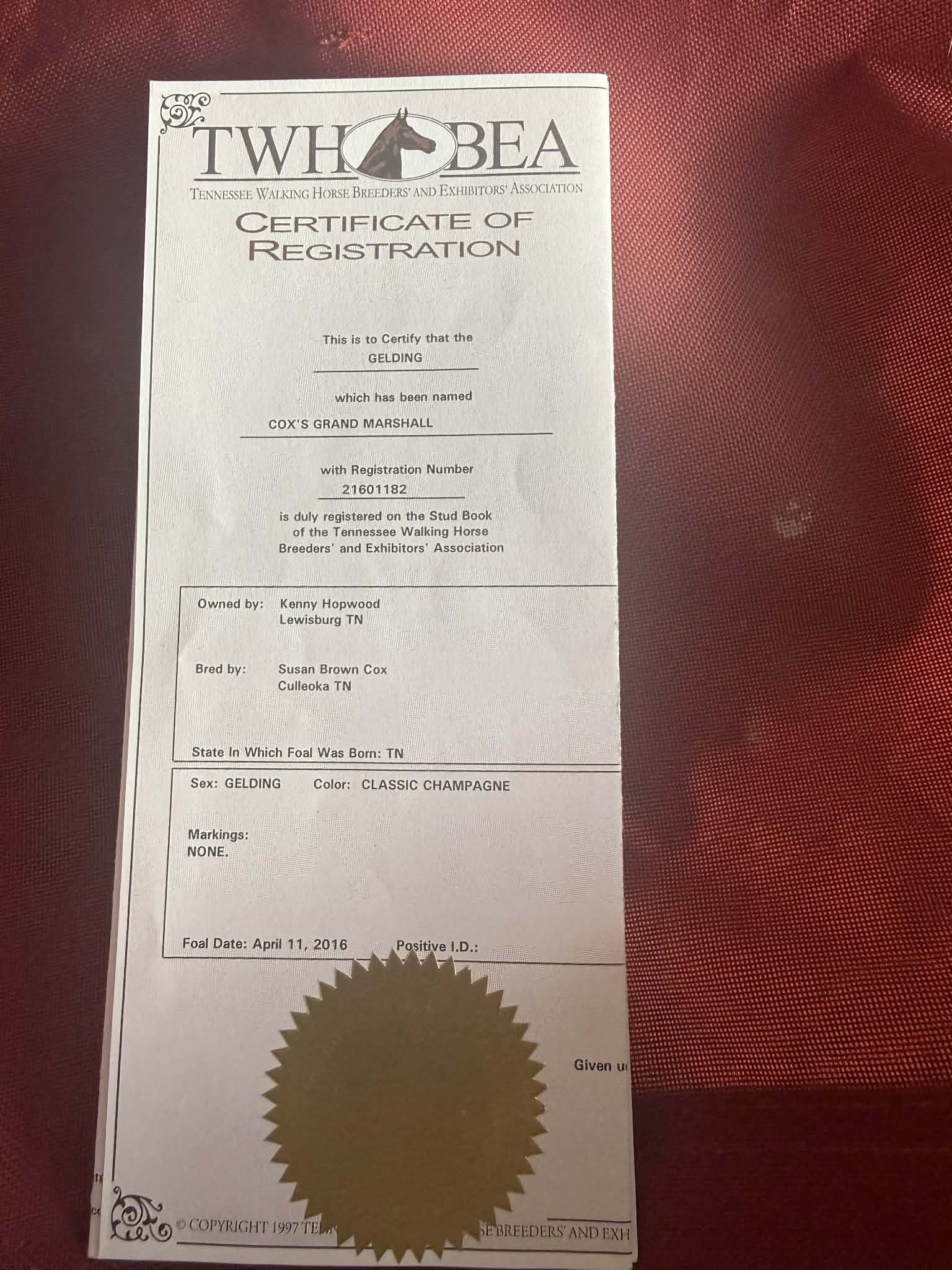 - Foal Date: April 11, 2016