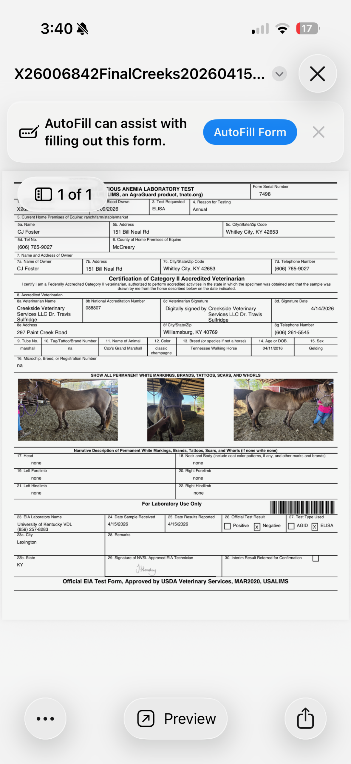 He is up to date on Coggins, health certificate, and vet exam. He has had his teeth floated and his wolf teeth removed. He has been vaccinated with Equine Core, including Rabies, West Nile, EEE, WEE, and Tetanus. Marshall has a great attitude about whatever he is asked to do.