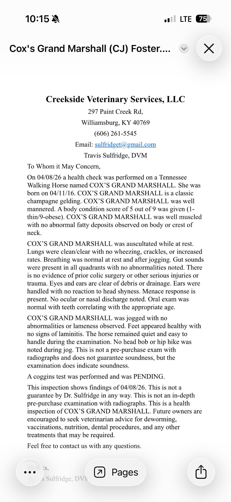 ** Coggins is available **