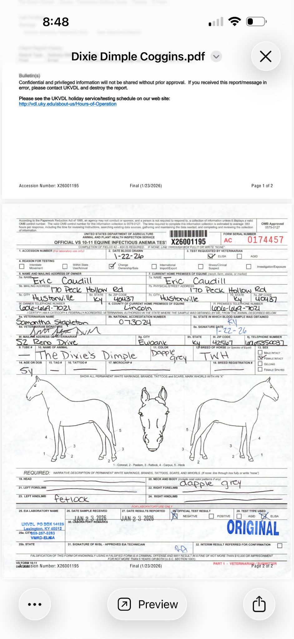 • Sex: Mare