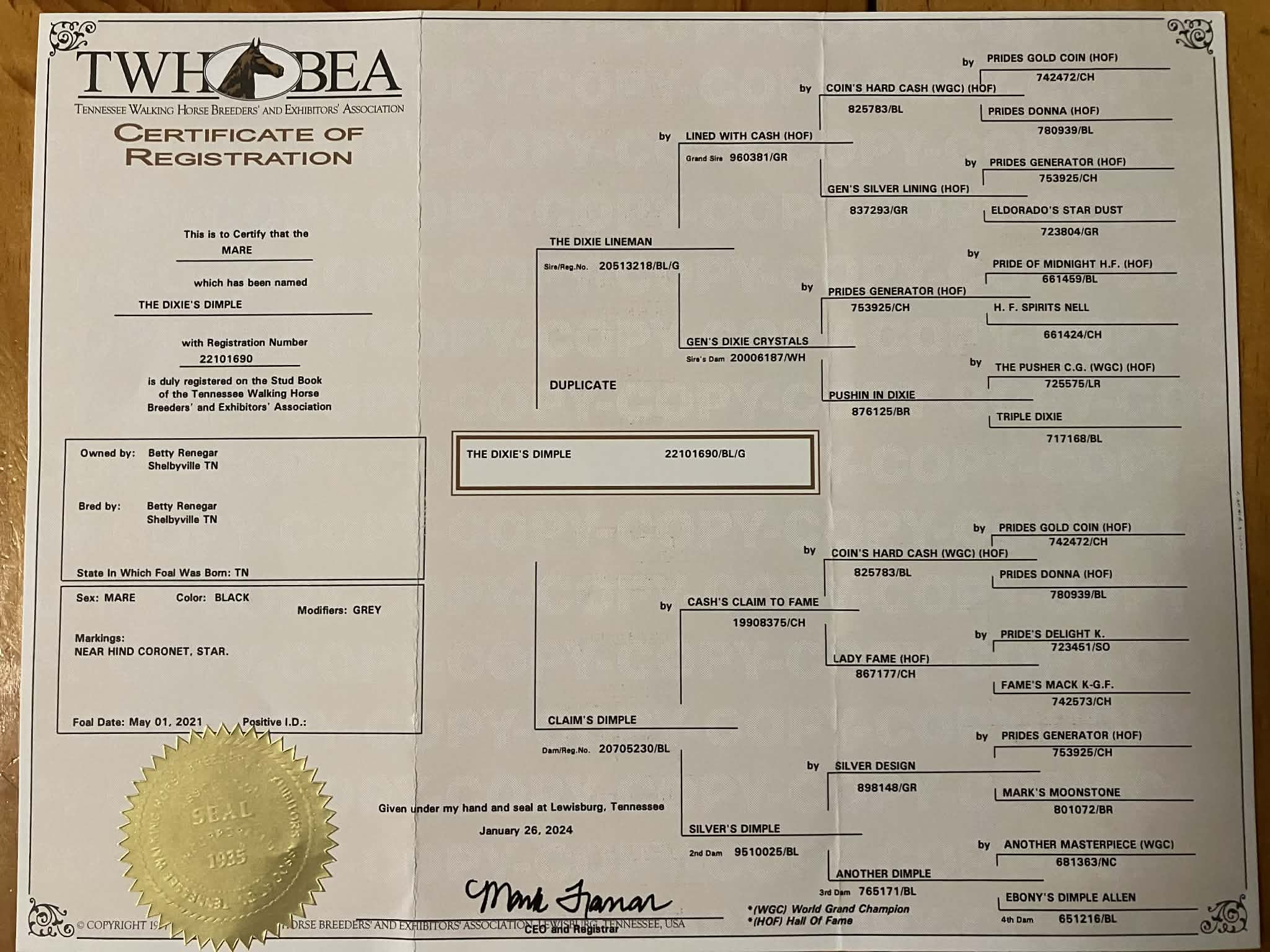 ONE-OF-A-KIND OPPORTUNITY If you’re looking for a registered TWH mare that is the perfect age, has been there and done that, and will be safe and enjoyable for you and your family — The Dixie’s Dimple deserves a look.