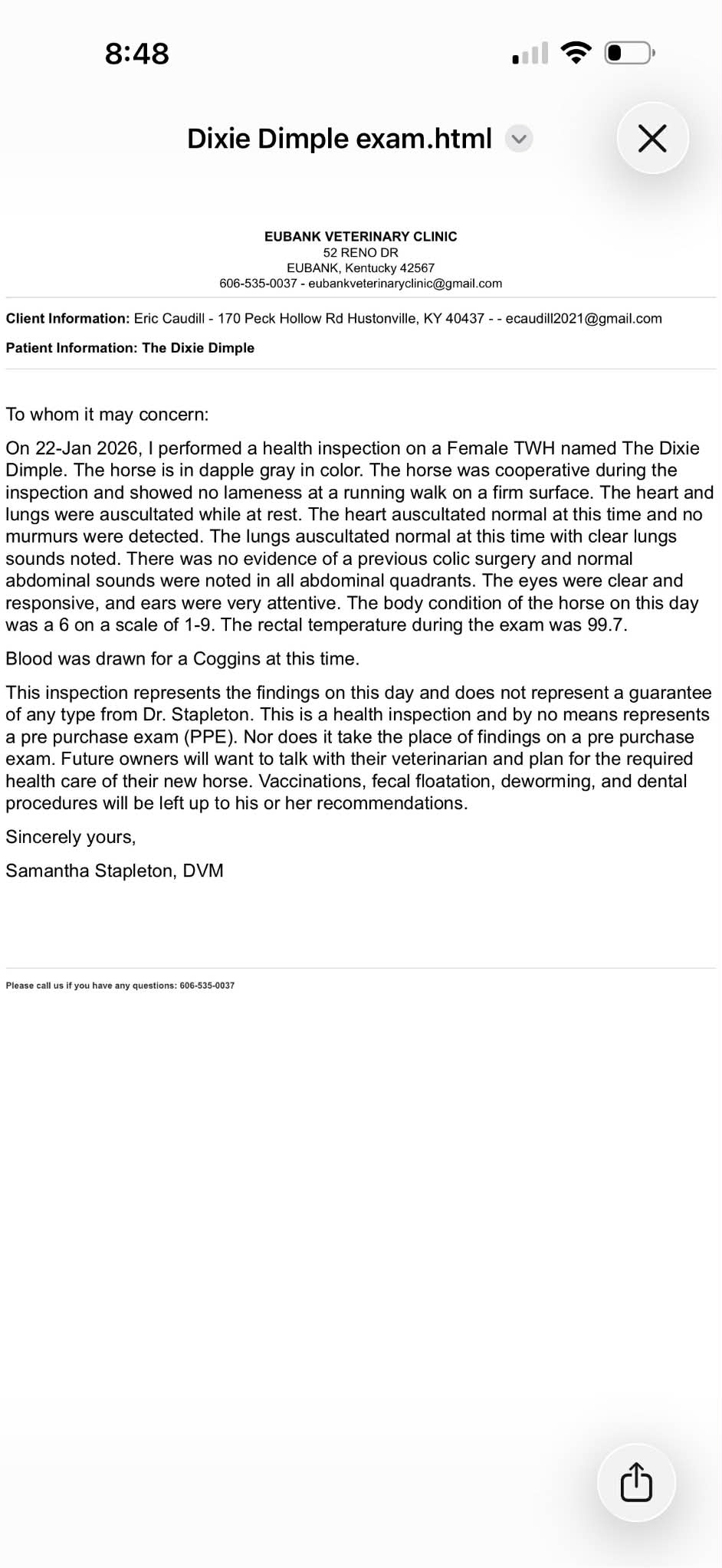 Call or text: 606-669-7021 Come meet her and take her for a ride — she won’t disappoint.