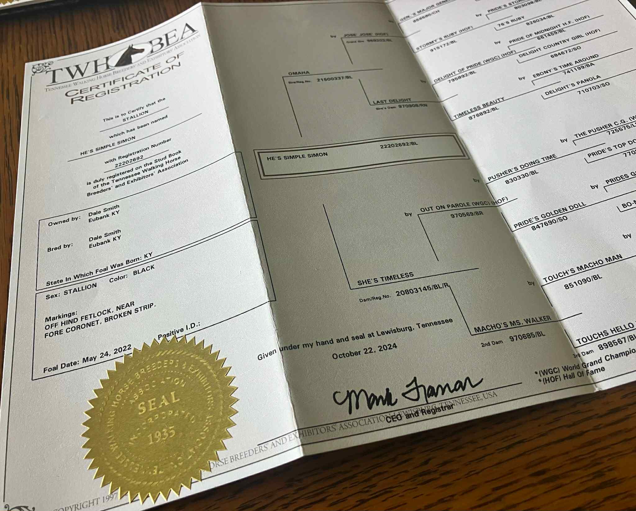 He’s Simple Simon is a Registered Tennessee Walking Horse Gelding.